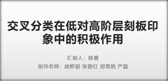陈赛同学首先进行了研究设计的汇报,她从社会现象出发,阐述了研究问题提出的背景“改革开放40年以来,以收入水平、职业地位以及受教育程度为标志的社会分层逐渐展开。基于客观拥有的经济资源的差异,以及主观感知到的社会地位的不同,个体将自己归入不同的群体,形成了不同的社会阶层。而低阶层对高阶层持有的消极刻板印象,导致强烈的群际焦虑和仇富心理,不利于建立公平的社会秩序,增加了社会动荡的风险”,在这一背景下,陈赛同学的研究拟从社会认同理论出发,通过两个实验探讨交叉分类在低阶层对高阶层的刻板印象中的积极影响及自我锚定在其中的中介作用。陈赛同学指出,该研究对促进社会阶层的群际交流,建构“理性平和”的社会心态以及维护社会的长期稳定等方面具有重要意义。