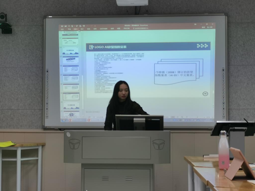 罗学敏汇报完毕后,同学们针对她的汇报提出了几个问题:1、为什么在理论中提及注意回复理论?2、欲望指数量表测量的是什么?3、为什么调节作用只出现在上半段?针对这三个问题,罗学敏做出了相应的回答。有一些她暂时没办法回答的问题将在私下查阅相关文献后再进行讨论。随后,严磊老师对罗学敏的汇报提出了一些自己的想法,严老师问到,这个研究的出发点是否是要提升老员工的幸福感?如果是,在现有研究中怎样能让人变得更幸福呢?如果有这些方法,我们怎样维持住自己的幸福感?严老师提出这三个问题的目的是在于让罗学敏同学思考清楚她的研究问题到底是什么?该从哪里入手。紧接着严老师又提出自然联结是要解释怎样的心理现象,进一步帮助学敏进行思考。最后,又从自然联结的分类切入为罗学敏同学提供了几个想法和思路,罗学敏十分感谢严老师的建议,并表示一定会再深入研究。