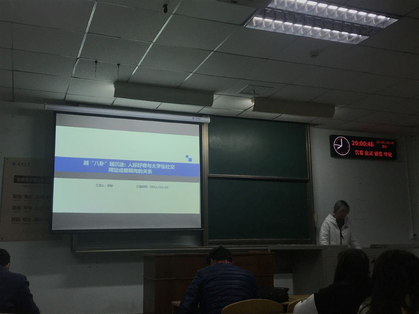 (通讯员 张蔓茹)2021年11月22日晚7点整,第34次青少年网络心理与行为专题例会在13教B区210召开。此次例会共有22人参与,包括硕士生导师朱晓伟、连帅磊老师和他们的研究生,以及部分本科生。本次会议由陈旋同学、罗婷同学进行文献汇报,由张蔓茹同学负责本次的会议记录。