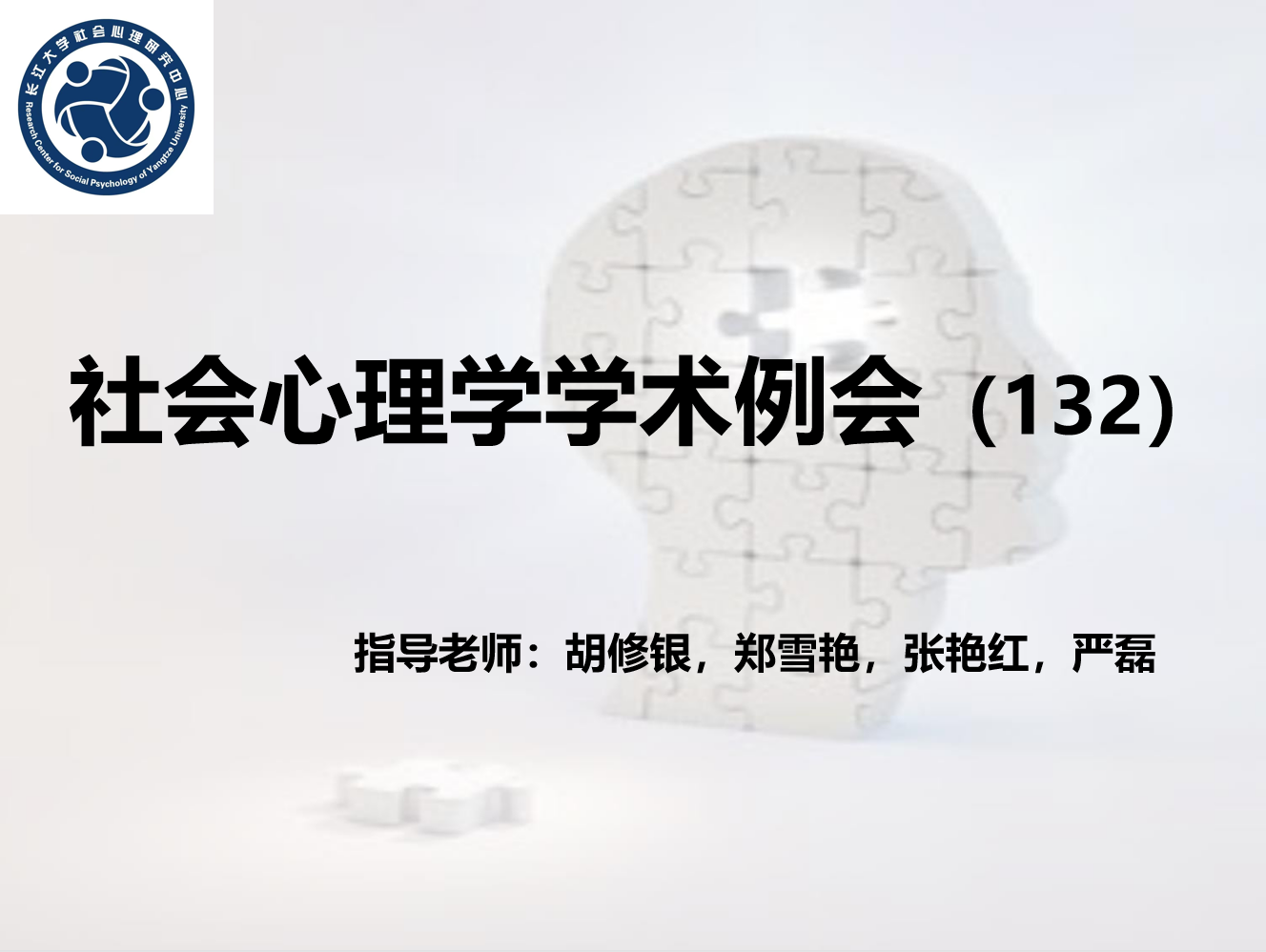 (通讯员:魏文欣)2023年3月29日晚19点至21点,第132期社会心理学学术例会在腾讯会议上举行。出席本次例会的有严磊老师以及13名研究生和2名本科生。本次例会由研一韩淼主持,研三梁婷、陈思园和罗学敏进行硕士毕业论文预答辩,其汇报分别为《消极元刻板印象对女性老员工职业决策过程的影响及其作用机制》、《疫情背景下群体认同对老员工幸福感的影响:社会联结与核心自我评价的链式中介作用》、《权力感对老员工亲社会行为的影响:一个链式中介模型》。