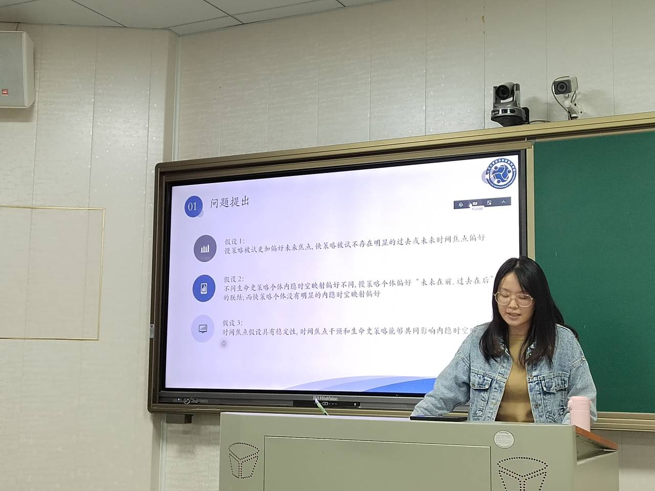 参加本次例会的老师还有郑雪艳老师、严磊老师、甘进华老师、特邀嘉宾杨姗姗老师以及10名心理学研究生、12名本科生科研助理,6名旁听本科生。本次例会由研一周久远同学主持,由吴含笑和胡倍嘉进行文献分享汇报,其汇报主题分别为《生命史策略框架下时间焦点对内隐时空映射的影响》和《社会公平感对不同阶层目标达成的影响及其过程》。