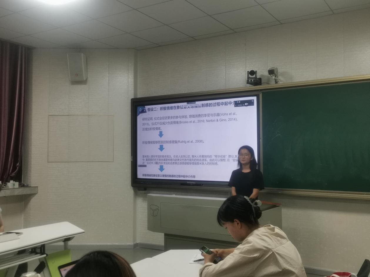 接着姚露馨汇报的文献以中国普米族人的传统文化仪式“敬锅庄”为例,采用回忆任务、创设新颖仪式等方法考察了仪式动作、象征意义和积极情绪对普米族青少年及成人的控制感的影响。结果发现,仪式动作和象征意义对控制感的影响并不存在交互作用,仪式动作与象征意义对控制感的影响存在双路径机制,研究结果对探究仪式动作、象征意义和积极情绪对个体控制感的影响有重要启示。