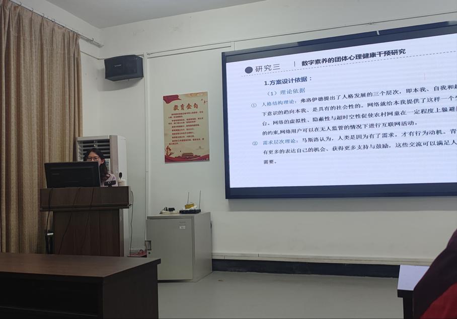 通讯员 陶燕林)2023年11月19日晚7点整,本学期青少年网络心理与行为第九期例会在5教203 正式开始,朱晓伟老师、连帅磊老师、甘雄老师、周婷老师参加了本次例会,还有部分研究生和部分本科生也参与了本次例会中,会议过程十分热烈。本次会议由两位研三同学带来毕业论文进展汇报。