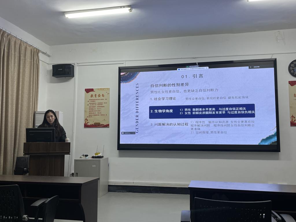 首先,杨宇蓉同学给我们分享2023年10月发布在《Learning and individual Differences》杂志上的一篇文献,文章的题目是《The relationship between students' gender and their confidence in the correctness of their solutions to complex and difficult mathematics problems》,文章是为了研究性别、问题难度和特定问题的自信判断之间的关系。最后发现男性比女性更自信,而且随着问题难度的增加,自信的性别差距减少,女性比男性更善于校准,并且校准的性别差距随着问题难度的增加而增加,女性从自信心不足过渡到过度自信。杨玉荣在汇报尾声,提出自己的收获和思考。汇报过后,汪瑛倩同学提出了自己的疑问,甘雄老师指出在准备汇报文献是应阅读与文章研究内容相关的文章,充分准备,才能够对该领域有深入的了解。最后,各位老师对之后文献汇报的同学提出了要求,要增加阅读量,丰富自己的理论知识等。