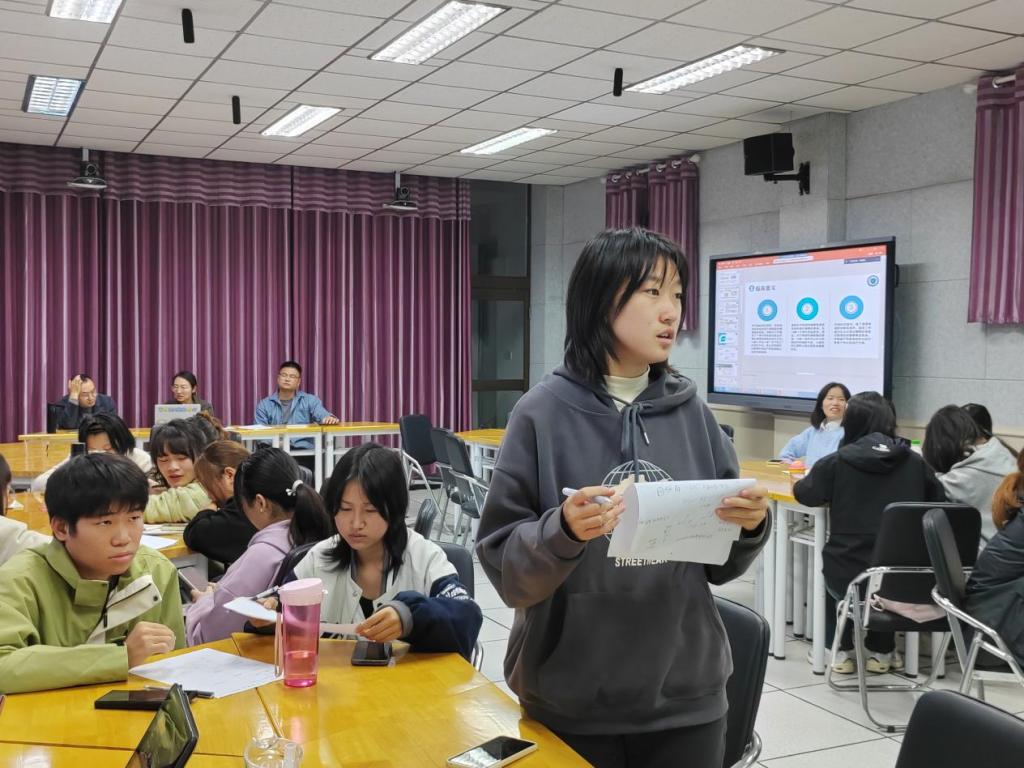 在教师点评环节:针对李雨田同学的文献分享汇报汇报,老师们先是肯定了李雨田同学所选取的文献内容题材新颖,接着便提到了可以值得思考的地方:1.文献中所做的12项研究以及中间变量的选择是否都有意义、在翻译文献时对“真实性”这一名词的解释是否全面;2.可以在阅读文献时对研究进行统合整理;3.阅读文献时明确研究目的,汇报时长要合理安排,可以在文献中选取对自己有益的部分合理运用。