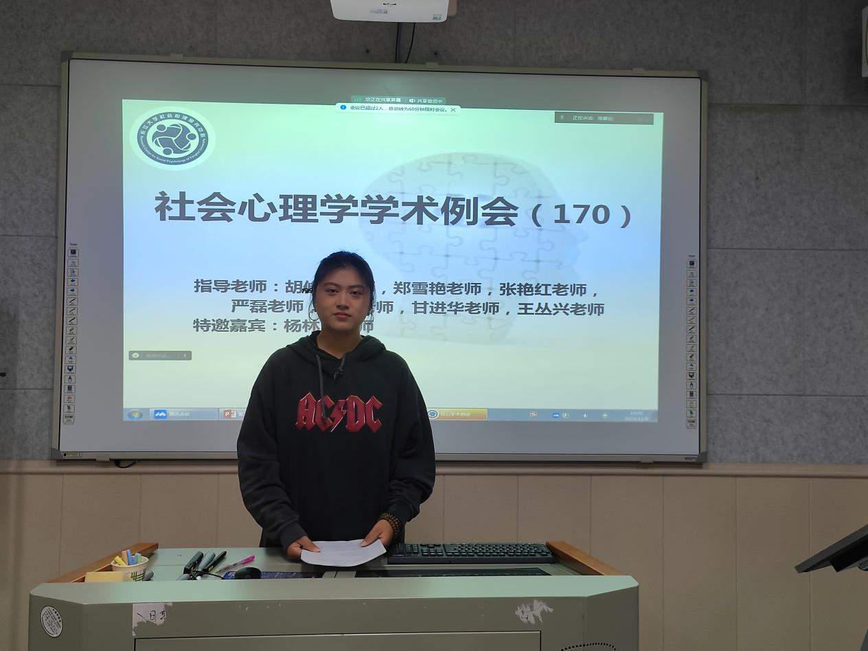 (通讯员:冷祥瑞)2024年11月8日19时至21时,第170期社会心理学学术例会在太阳集团tyc151cc东校区11教201室如期举行。本次例会采取线上线下相结合的形式,由高馨燚同学主持,主题为“文献分享汇报”。参加本次例会的老师有严磊老师、王丛兴老师、甘进华老师以及杨林川老师(三峡大学),员工有12位心理学研究生,24位本科生科研助理。