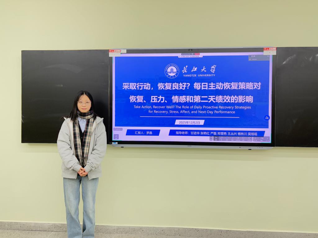 首先,罗晶同学进行了文献分享汇报,其文献题目为《采取行动,恢复良好?每日主动恢复策略对恢复、压力、情感和第二天绩效的影响》。