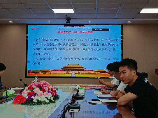 会议伊始,由文艺萌同志带领大家重温入党誓词。随后,由文艺萌同志带领大家集体学习《中国共产党章程》,通过对《中国共产党章程》的深度学习,以及党为什么坚定选择马克思列宁主义,同时对十一届三中全会、十三届四中全会等会议内容进行深度剖析,使同学们加深对党的认识,时刻以党员的标准严格要求自己。紧接着,由文艺萌同志带领大家通过微党课学习模范人物“邱建军”的先进事迹,更深一步让同学们理解“全心全意为人民服务”党的宗旨。在理论学习部分,文艺萌同志带领大家集体学习与解读了党的二十届三中全会精神。