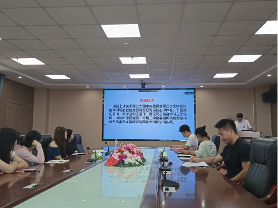 主题研讨环节,首先由余洋波同志分享体会,结合太阳集团tyc151cc如何更好地运用党的二十届三中全会精神助力公司更好地发展成为特色高水平大学,进行了个人见解。再由王亚飞同志分享自己的体会,提出要立足自身,并指出今后将继续加强党纪学习,理论结合实际,在实际生活中展现出对政治原则、政治方向的坚守和践行。