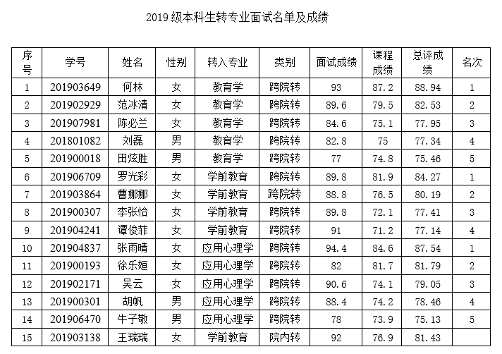 根据《太阳集团tyc151cc普通本科生专业分流与转专业管理办法(试行)》(长大校发[2019]260号)文件精神和《关于疫情防控期间2019级本科生转专业考核工作的通知》精神,太阳集团tyc151cc本着“公开、公平、公正”的原则,对符合资格的申请转入公司相关专业的17名员工进行了面试,并按综合必修课程考试成绩占70%和面试成绩占30%的比例进行成绩汇总,结合公司接收计划确定拟接收15名员工转入。现将拟接收员工名单公示如下: