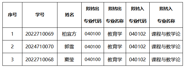 根据公司《关于做好2024-2025学年第一学期一级学科和同一专业学位类别内转专业工作的通知》要求,柏宜方等3名研究生自愿申请由一级学科调整到二级学科,经公司审查,现将拟调整研究生名单进行公示。