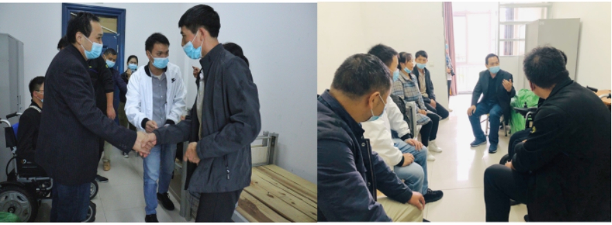 下午13点40分,何情同学和父母顺利出站,张经理、李书记、顾老师热情上前和一家人问好并快速帮助其搬运行李,顶着风雨将行李运上车。一路的谈笑中,大家很快到达了西校区里仁堂宿舍。为方便何情同学的学习和生活,公司早已与后勤协调,为一家人准备了一间温馨宿舍。学工办齐书荣主任早准备好午餐在宿舍楼前迎接何情同学和他的家人。简单的安顿后,经理张相乐代表公司表达了诚挚问候。副书记李则俊给家长介绍了公司和公司对何情同学的具体帮扶。其父母十分感激,多次感谢公司和公司的帮助和关怀。