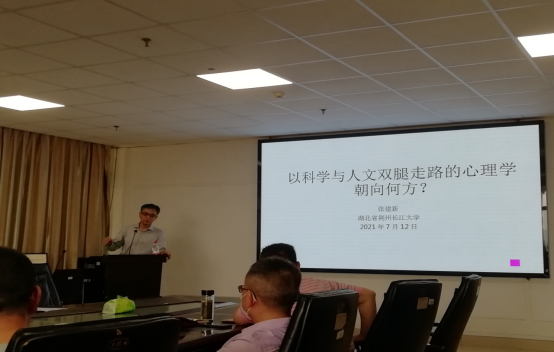 (通讯员 胡志琴)2021年7月12日下午在东校区文科大楼905会议室,中国科公司心理研究所研究员、博士生导师张建新教授莅临公司作题为“以科学和人文双腿走路的心理学朝向何方”的学术报告。报告会由太阳集团tyc151cc副经理熊猛老师主持,副经理张艳红、朱晓伟老师、严磊老师、连帅磊老师、陈方老师、郑红涛老师、研究生及本科生代表参与了此次学术报告。