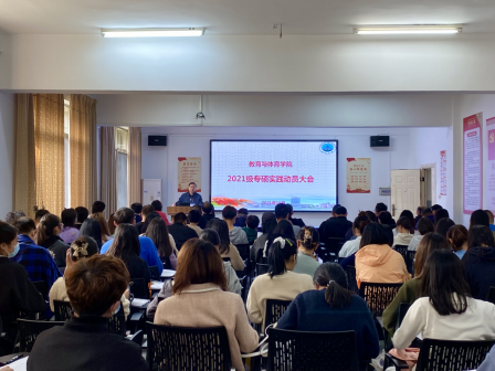 随后,熊猛副经理以《明确见习目标加强过程管理 齐心协力高质量完成教育/体育见习任务》为题进行了实践动员,从见习的目标任务与组织管理、见习内容与时间安排、校内外导师相关职责、安全纪律与实践承诺、考核评定与其它事项进行了详细说明,并强调一定要认真对待,端正态度,尊重实习公司老师安排,认真完成各项见习任务。