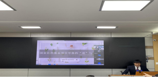 (通讯员:邓林远)2021年12月5日上午,长江教育与体育论坛第十三讲在文科楼910举行。特邀韩山师范公司温搏教授以《国家社科基金项目申报的“道与“术”》为主题与师生进行学术交流,线上线下同步进行。学术报告会由熊猛副经理主持,公司部分教师及研究生参加了本次活动。