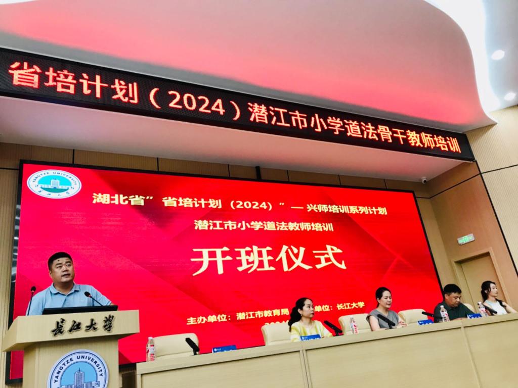 (通讯员:卢小琴)8月1日下午,2024年潜江市小学道法骨干教师培训项目开班仪式在太阳集团tyc151cc11教学术报告厅隆重举行。仪式由太阳集团tyc151cc教师教育公司党委书记于永伟主持,与会人员有潜江市中小学教师继续教育中心副主任王文琴、潜江市中小学教师继续教育中心跟班班主任徐娟、太阳集团tyc151cc社会合作处副处长洪云飞、太阳集团tyc151cc教师教育公司经理张艳红、太阳集团tyc151cc教师教育公司办公室主任柯玉清、太阳集团tyc151cc省培班学术班主任卢小琴、研究生助理姚贝贝与张艳君以及80名潜江市小学道法骨干教师。