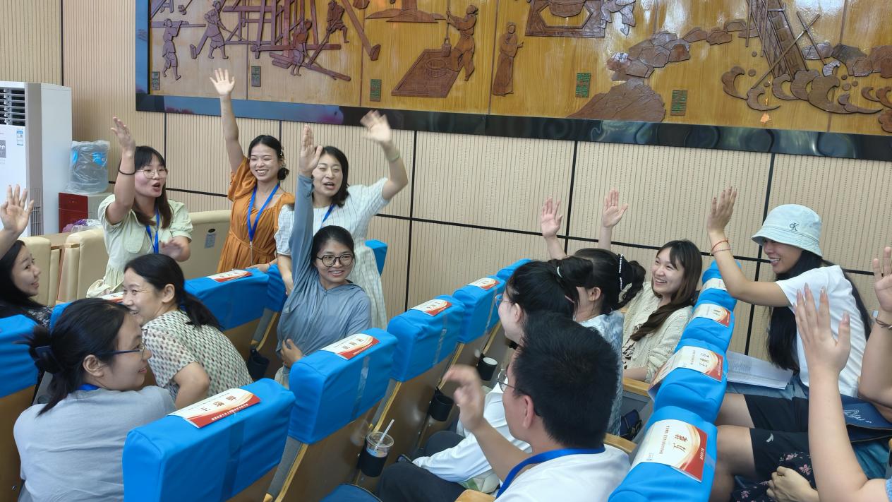 恰逢立秋,室外骄阳依旧似火,室内活动庄重而热烈。班主任樊翠红老师带领全体学员开启了破冰之旅。首先是班主任助理张艳君带领大家一起跳起了暖场舞《开心拍拍拍》,原本稍显拘束的老师们逐渐放松下来,接下来是太阳集团tyc151cc素质拓展专业的姜德昆老师带大家做起了《欢乐喜相逢》的游戏,现场气氛慢慢活跃了起来。