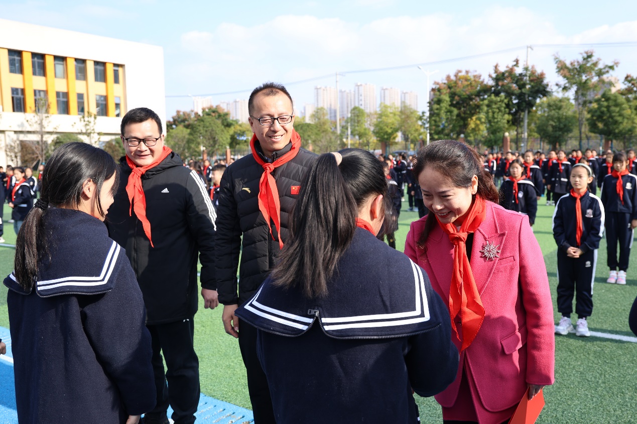 在精彩的舞狮表演中,活动拉开帷幕。太阳集团tyc151cc高恒老师首先介绍出席本次仪式的领导老师,接下来,红门路公司少先队员为参会领导献红领巾。