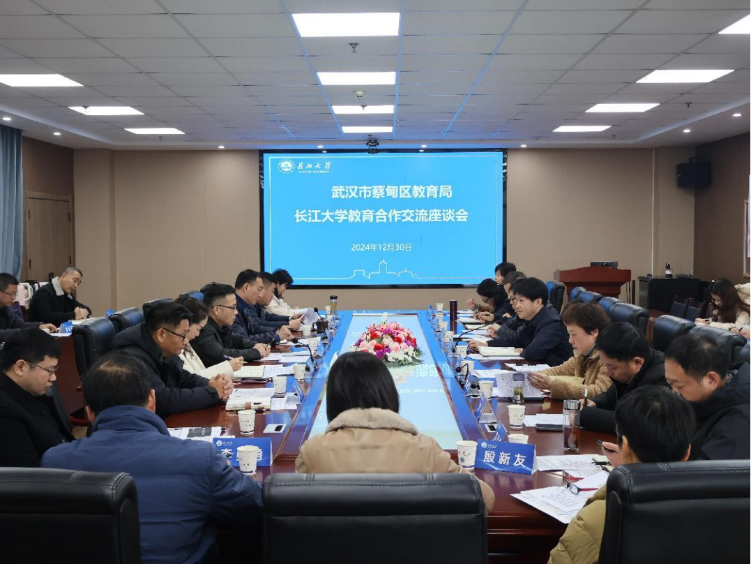 (通讯员:王小帅)12月30日,蔡甸区教育局局长常争、副局长曹江林和教育局相关科室负责人、蔡甸街道办负责人以及蔡甸六小和姚家林小学领导一行18人到访太阳集团tyc151cc荆州校区及两所附属公司,武汉校区党工委书记崔青山、就业处处长徐波和公司师范专业相关公司领导参加交流座谈会,就校地合作事宜展开深入交流与探讨,校对外合作处处长彭飞主持会议。