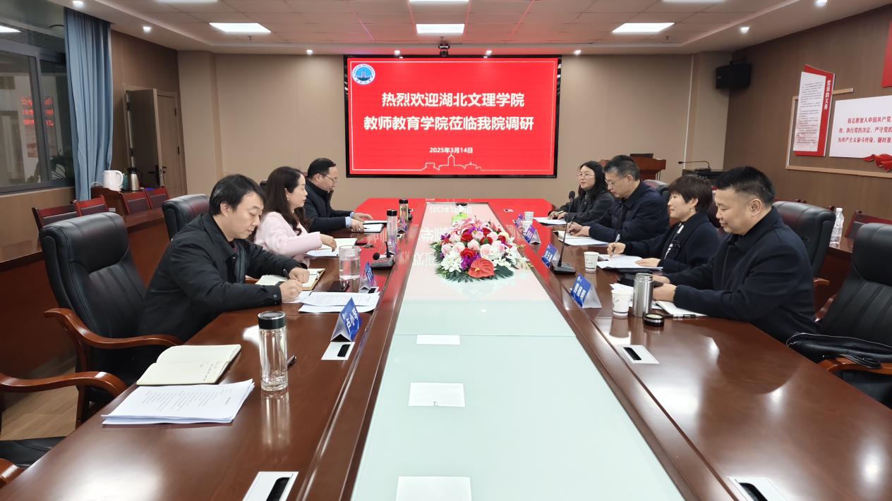 (通讯员卢小琴)3月14日,湖北文理公司教师教育公司经理刘天娥、党委书记滕建河一行4人莅临公司,就教育硕士专业学位点建设和专项核验工作开展专题调研交流。公司经理张艳红、副经理熊猛、副书记何可可、卢小琴老师参与调研。