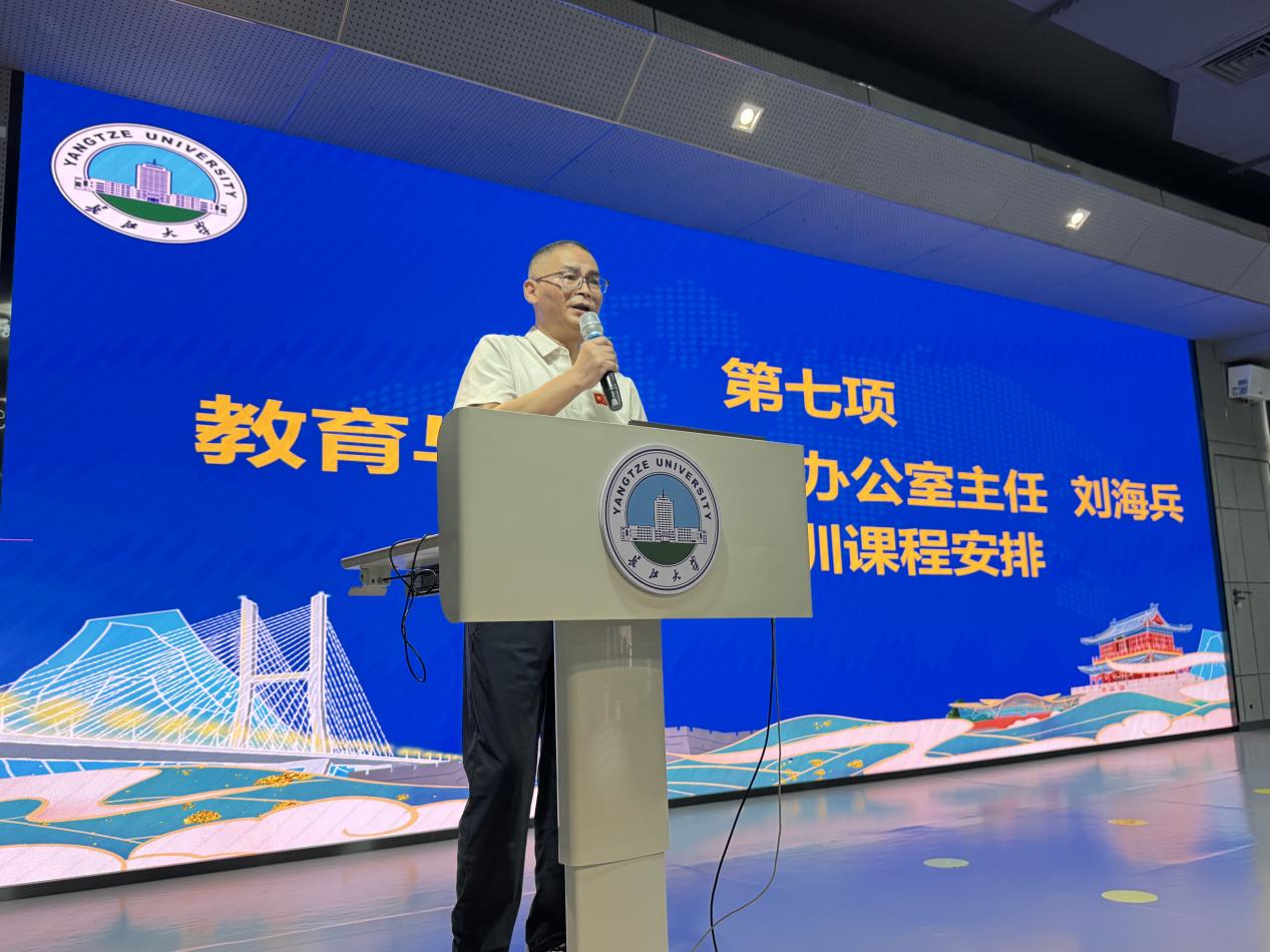太阳集团tyc151cc办公室主任刘海兵介绍了培训的具体安排。本次培训采用“理论+实践+研讨”的多元模式,涵盖专业理念、素养提升等五大模块课程,并融入楚文化学习和趣味活动,旨在通过创新教学方法全面提升教师综合素养。