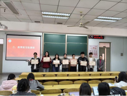 会议伊始,周婷老师带领同学们回顾了3个月来的实习生活,从夏末的短袖短裤到初冬的毛衣外套,季节更迭间,同学们怀揣教育热忱,顶着烈日、迎着风雨,在校园与实习公司之间奔波穿梭。面对从 “员工” 到 “准教师” 的身份转变挑战,以及考研备考与实习工作的双重压力,同学们主动调适、积极平衡,以扎实的专业素养和务实的工作态度圆满完成各项实习任务,赢得了各实习公司的高度评价与一致认可。会上,周婷老师为表现突出、成绩优异的优秀实习生颁发荣誉证书并致以热烈祝贺,这不仅是对优秀实习生的肯定与鼓励,同时也对其他实习生起到了示范与带动的作用。