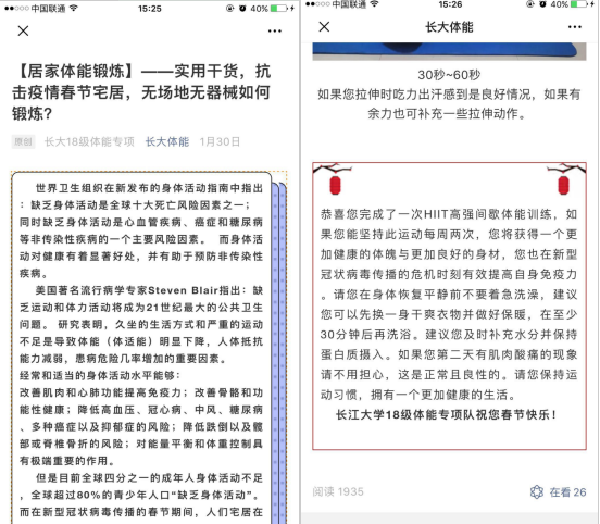 李靖同志积极响应武汉市疫情抗击号召,积极参与市内夜间紧急搬运工作两次,积极组织相关专项员工积极申请微信公众(长大体能公众),持续更新公众号,目前已完成相关居家身体活动操课和训练课程7篇,阅读量已接近3000人次。响应公司号召,积极组织开展教学培训和科研工作,担任课程《健身体能训练》、《健身体能专项理论与实践》等课程的教学工作,申请太阳集团tyc151cc疫情抗击专项课题一项。李靖同志始终深信疫情抗击的关键时期,体育活动可以凝聚社会居家人员的个人居家意愿,规范社会秩序,在特殊时期提升相关人员身体活动水平,可以有利于疫情抗击过程中的社会大众身心健康水平。