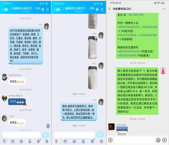教学实施阶段,樊翠红同志从新型肺炎防控宣传和员工的心理疏导入手,先做好卫生和健康教育,疏导员工的恐慌和紧张情绪;注重员工学习能力培养,提倡学会学习与学习知识同等重要的教学指导思想;课前,利用幕课资源、发放教学预习资料、预设启发式问题进行课前预习;课中,重组教学内容,采用知识点归纳、每课测评、讨论等形式打造30分钟小节课堂,较好地完成了重难点精讲和在线辅导答疑;课后,让员工整理笔记,录制训练视频,自主练习居家防疫操等形式, 增加学习信心,激发员工顽强拼搏的精神斗志,提振士气。
