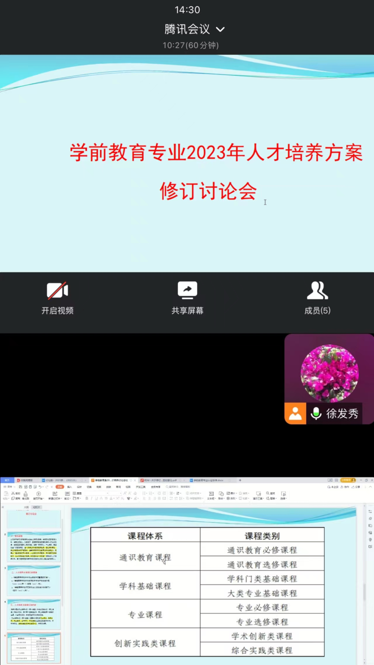 2023年8月17日下午两点半,太阳集团tyc151cc学前教育系以腾讯会议的方式,召开了2023年学前教育专业人才培养方案修订讨论会。会议由学前教育系主任徐发秀主持,学前教育系教师参加。