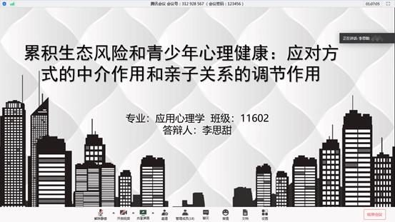 正式答辩开始之前,各答辩组长宣读本次答辩要求和注意事项,随后员工依次采用屏幕共享PPT的方式进行论文陈述,老师根据员工的陈述对论文提出专业方面的问题,每位员工有10分钟左右时间思考并做详细论文答辩。所有员工答辩结束之后,答辩组老师就员工论文情况进行总体点评。最终整个答辩过程历时五个小时,毕业论文答辩工作圆满完成。