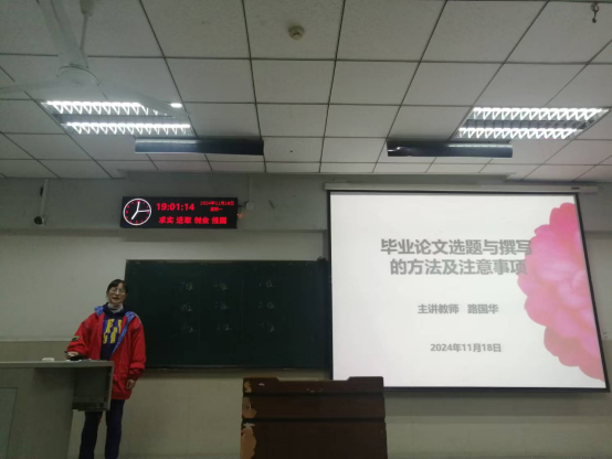 紧接着,课程安排了路国华教授做了“毕业论文选题与撰写的方法及注意事项”专题讲座。路国华教授深入浅出地讲解了体育教学研究论文的写作技巧,以及在撰写过程中需要注意的学术规范和研究伦理,极大地提升了员工们的学术写作能力。