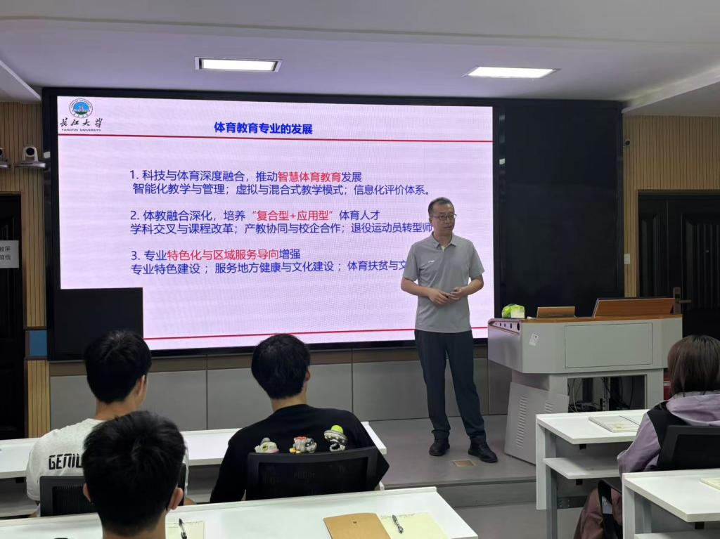 (通讯员 熊一铮)2025年 5月15日上午,公司“求实导师学术沙龙”之《师范类专业认证背景下的高校体育教育专业建设与发展》在文科楼910举行,杨青宝副教授主讲,2024级体育类研究生参加了本次活动。
