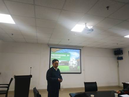 陈教授的报告分为四大部分,首先从2008年北京奥运会国际奥委会主席萨马兰奇来华时问时任国家主席胡锦涛同志“中国足球是怎么回事?”作为引子,抛出问题引发思考;第二部分是对中国足球百年历史进行了梳理;三是总结了中国足球运动的自身亮点;四是对足球运动的反思与启示。陈教授对以上四大部分分别展开论述,既传达出国人推动足球发展进步的奋斗历程,也描绘出现代足球在中国发展的起伏;既体现了对当今中国足球运动的担忧,又流露出中国足球未来的希望;既表明了国家领导人对中国足球的重视,更启示业界人士对第一运动的反思。陈教授的学术演讲幽默生动,在座师生掌声不断。学术报告部分结束后是自由提问阶段,19级研究生郑静同学就“中国女足发展概况”、“五人制与十人制足球的区别”首发两问;18级乒乓球专业队运动员从心理学研究出发,结合乒乓球与中国足球进行对比;随后杜光友教授以中国足球的现状发出疑问:“外行领导内行,中国足球是否还有希望”?再度将学术报告推向高潮。陈教授对每个问题都进行了精彩的回答,报告厅再度掌声雷鸣。