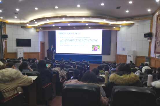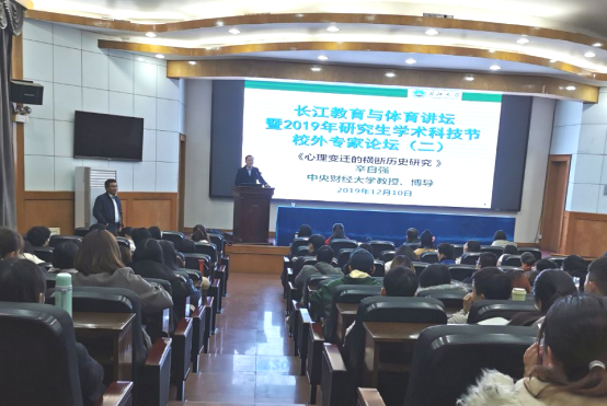 (通讯员 陈语萱、代晋/文/摄)12月10日 晚上七点,教育与体育公司在东校区11教报告厅举行了长江教育与体育讲坛((2019年第二讲))暨太阳集团tyc151cc2019年研究生学术科技节校外专家论坛。本次论坛以“心理变迁的横断历史研究”为主题,中央财经大学社会与心理公司经理辛自强教授担任此次活动的主讲人。报告会由教育与体育公司副经理熊猛博士主持,李焕玉书记、张艳红副经理、潘友刚老师、郑雪艳老师、朱晓伟老师、冯雪老师、卢忠耀老师和闫景蕾等老师莅临现场,大二、大三心理学专业同学以及全体研究生参加了此次学术报告会。