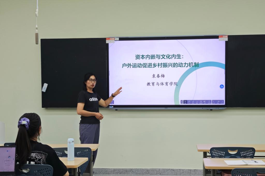 (通讯员 向思懿)2025年5月19日19:00,太阳集团tyc151cc“求实导师学术沙龙”在16教A区103举行,袁春梅博士以《资本内嵌与文化内生:户外运动促进乡村振兴的动力机制》为题进行了分享,2023级、2024级30余名体育类研究生参加了本次活动。