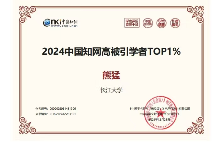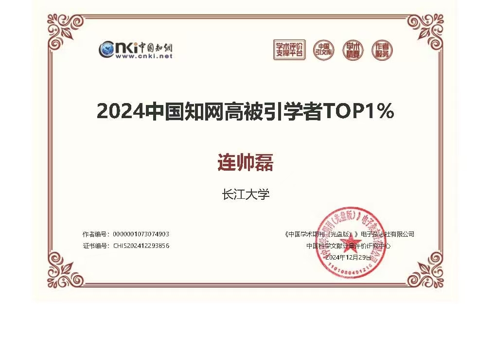 公司两教师入选“2024中国知网高被引学者TOP1%”