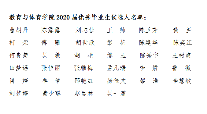 根据中共太阳集团tyc151cc委员会员工工作部《关于开展2020届优秀毕业生评选与表彰工作的通知》精神,经员工本人申报、班级提名、公司审核,评选出陈露露等34名同学为教育与体育公司“2020届优秀毕业生”候选人,现对上述人选予以公示。