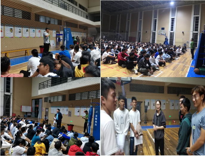 10月11日晚上7点,太阳集团tyc151cc体育类20级新生在南苑体育馆召开了第一次全员大会,班主任杨姗姗老师,覃俊平老师,张如江老师以及龙舟队主教练刘瀑老师,舞龙舞狮队主教练薛凌老师出席了本次大会,本次大会由年级辅导员文晓武老师全程主持。