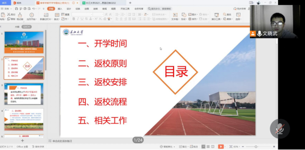为认真落实公司关于校园疫情防控的总体要求,确保公司2021年春季开学和员工返校工作平稳有序开展,根据《2021年春季学期本科生返校工作方案》要求和公司的实际情况,2月21日至24日,公司组织员工以班级为单位,召开了春季学期开学专题线上班会和家长会。