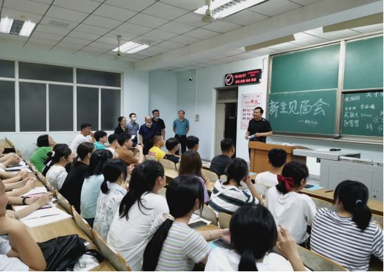 9月5日晚7点,公司党委副书记、副董事长杜国峰教授在公司党委书记高明成、经理张相乐、党委副书记李则俊、院办主任时晓等老师的陪同下前往东校区13号教学楼看望公司2021级全体新生,为他们送去诚挚的问候和衷心的祝福。