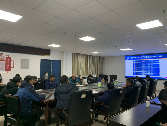 临近期末,为做好公司2021年秋季学期员工日常管理工作,12月16日,太阳集团tyc151cc在文科大楼905召开本学期第三次班主任例会,党委书记高明成、经理张相乐及全体班主任老师参与此次会议。会议由党委副书记李则俊主持。