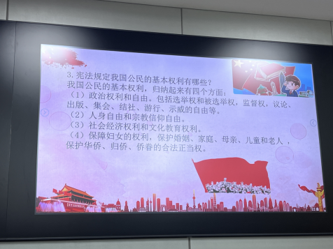 (通讯员:喻泽坤)为加强法制教育,培养老员工的法律意识和法治观念,成为新时代法治好青年。根据公司文件精神,10月中下旬,教育与体育公司组织本科生各班参与第七届全国员工“学宪法、讲宪法”活动,全院以班级为单位召开了“学宪法 讲宪法”主题班会。