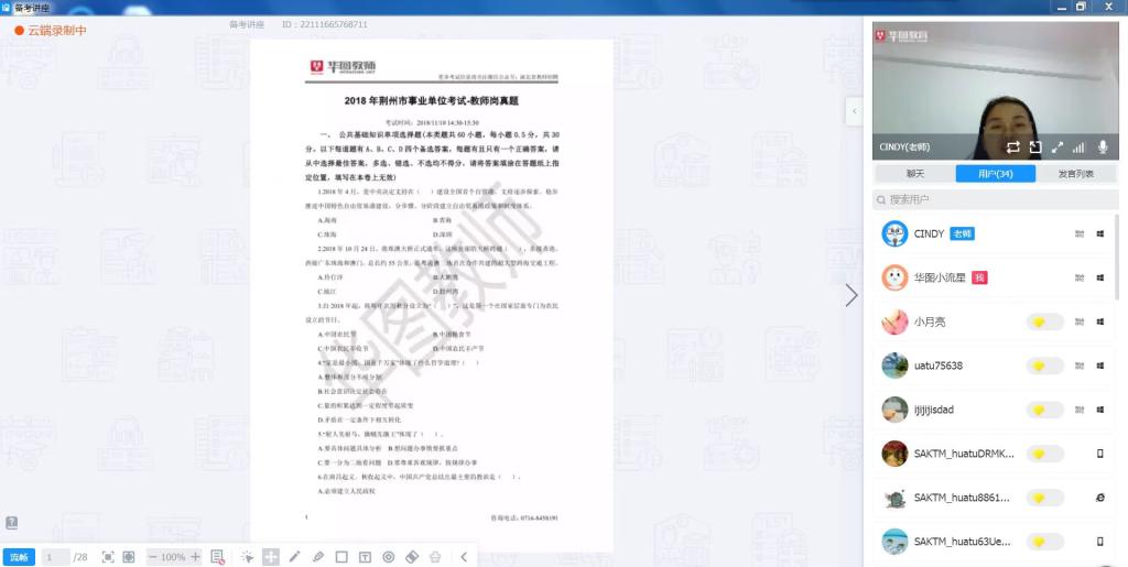 本次讲座针对将到来的义务教师统招、事业单位D类教师及教师单招等考试项目,针对公司大部分在校员工没有考试经验的情况,进行了一次较为全面的考情考务知识普及,同时通过对考试的形式、内容和答题技巧等等方面进行详细的讲解,通过对往年真题的讲解和示范,帮助同学们更加科学高效地备考,希望报考的同学们最终顺利通过考试!