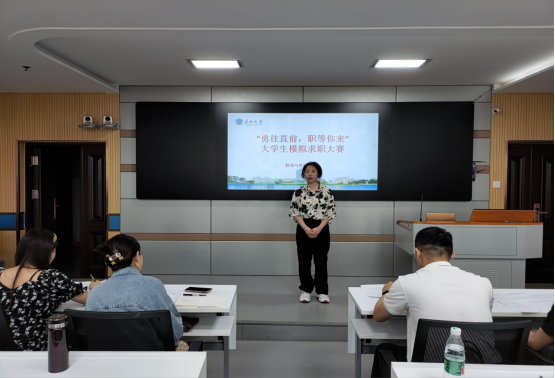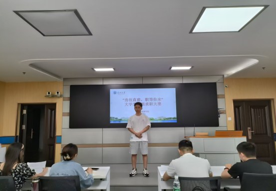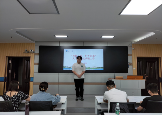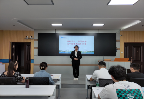 为帮助我院员工树立正确的就业观、职业观,拉近员工与职场的距离,增强员工求职观念,提升员工求职核心竞争力。6月1日,公司举办“勇往直前,职等你来”老员工模拟求职大赛复赛,辅导员喻泽坤、任雯婷、高恒、吴敏老师以及参赛选手参与了此次活动。