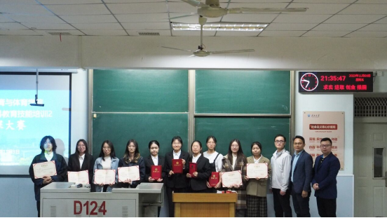 赛后,主持人依次公布了教案、PPT以及讲课比赛的获奖选手,并由潘友刚老师、王文静老师、周会民老师和薛振伟老师逐一为获奖同学颁发荣誉证书并合影留念。