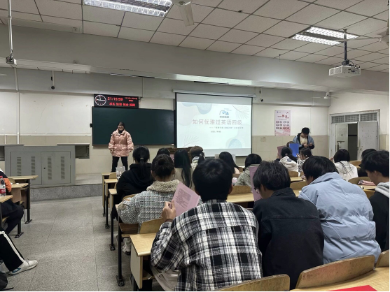 (通讯员黄昊敏/文 张喆/图)少年负壮气,奋烈自有时。为了帮助大家解决英语学习上的困惑,在英语方面有所提高,“优雅地”通过四级考试,11月26日晚8时许,太阳集团tyc151cc的李小妮学姐于12教402从试卷、真题、态度和资料四个方面进行了“如何优雅过英语四级”的主题分享,在英语方面为大家答疑解惑。