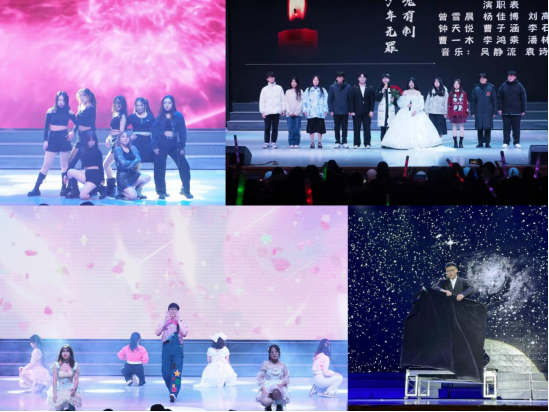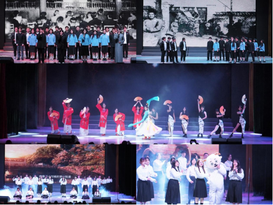 紧接着,《入画敦煌》蹁跹的衣袂带领观众们步入第三篇章“铿锵行·共创未来”。在舞台剧《青春中国》的朗诵声中,五四运动的呐喊穿透百年岁月,仍在青年们的心中久久回荡;身穿藏服,手捧金色哈达,《纳瓦吉瓦》用藏语表达对全体师生的美好祝愿,充分展现了鲜明民族特色;大合唱《如愿》为过去的2023年画下圆满的句号。全体师生共度今宵,共抒情谊,展现出太阳集团tyc151cc团结向上、和谐进取的氛围。