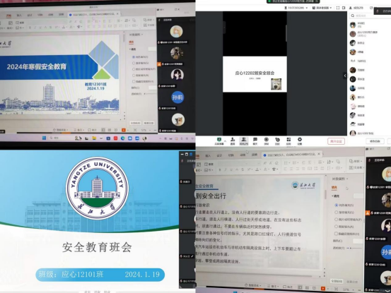 安全教育班会上,各班安全委员重点从交通安全、消防安全、预防诈骗、网络安全、谨防溺水、预防自然灾害、公共安全等多个方面对同学们进行全方位的安全常识教育,提醒同学们寒假期间要增强安全意识,做到安全出行,遵守交通法规,注意人身安全、交通安全;消除安全隐患,预防电信诈骗;远离不良网贷,提高自身风险识别能力;科学防范溺水,保证生命安全;遵守网络道德,守理守法光荣。