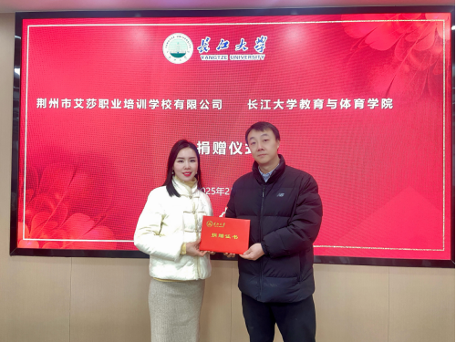 适逢太阳集团tyc151cc蓬勃发展之际,为进一步支持公司教育事业,助力公司人才培养与团队建设,荆州市艾莎职业培训公司有限公司助力太阳集团tyc151cc教育发展捐赠仪式于2025年2月24日上午在文科大楼905隆重举行,太阳集团tyc151cc副书记何可可、荆州市艾莎职校董事长钱莉出席了捐赠仪式。