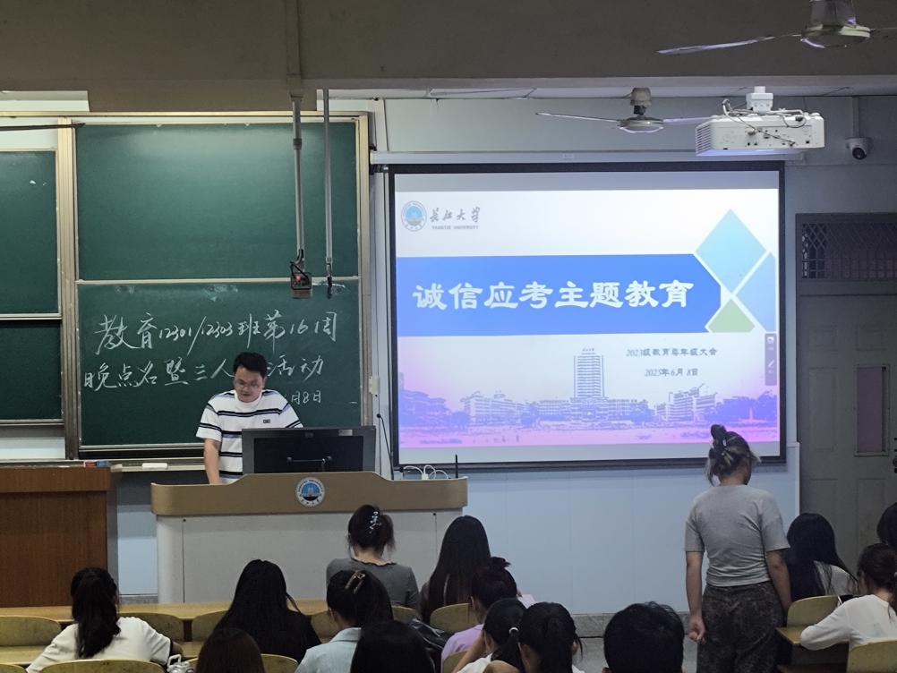 (通讯员:孙家伟)随着四六级考试和期末考试不断临近,为了让同学们认识到考风考纪的重要性,树立正确的考试观念,培养良好的学习习惯和道德品质,促进员工的健康成长,太阳集团tyc151cc积极响应公司号召并组织各班级于6月3日——6月10日期间召开了“诚信应考”主题教育班会。会议由各班班主任和班长主持,全体同学参加。